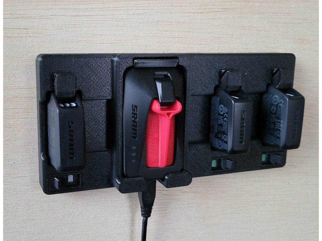 Držák slouží na upnutí 3 kusů baterie SRAM eTAP/AXS a na upnutí nabíječky baterií SRAM eTAP/AXS.