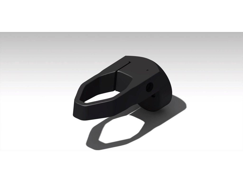 Varianta RCT 715: Držák je určen na radar s kamerou RCT 715. Tento držák není kompatibilní s radary bez kamery! Na tento držák se musí vždy nainstalovat pákový upínací mechanizmus z originálního gumičkového držáku dodávaného k radaru. Držák se montuje na vytaženou sedlovku z rámu, zespodu nasunutím.