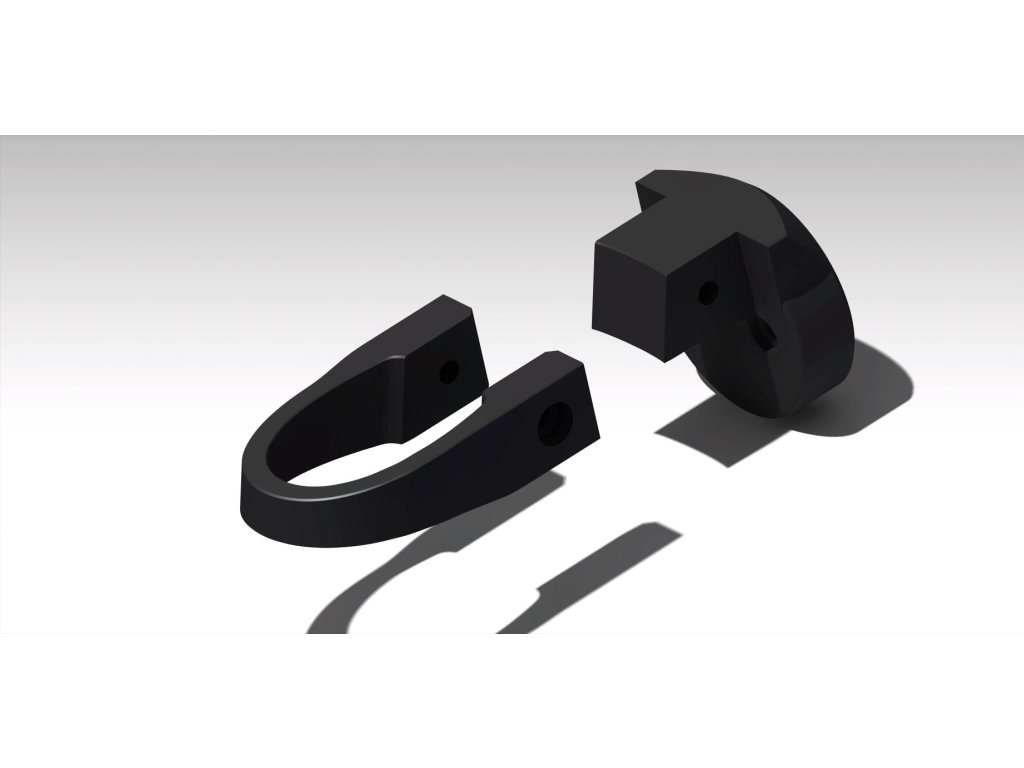 Varianta RCT 715: Držák je určen na radar s kamerou RCT 715. Tento držák není kompatibilní s radary bez kamery! Na tento držák se musí vždy nainstalovat pákový upínací mechanizmus z originálního gumičkového držáku dodávaného k radaru. Držák se montuje na vytaženou sedlovku z rámu, zespodu nasunutím.