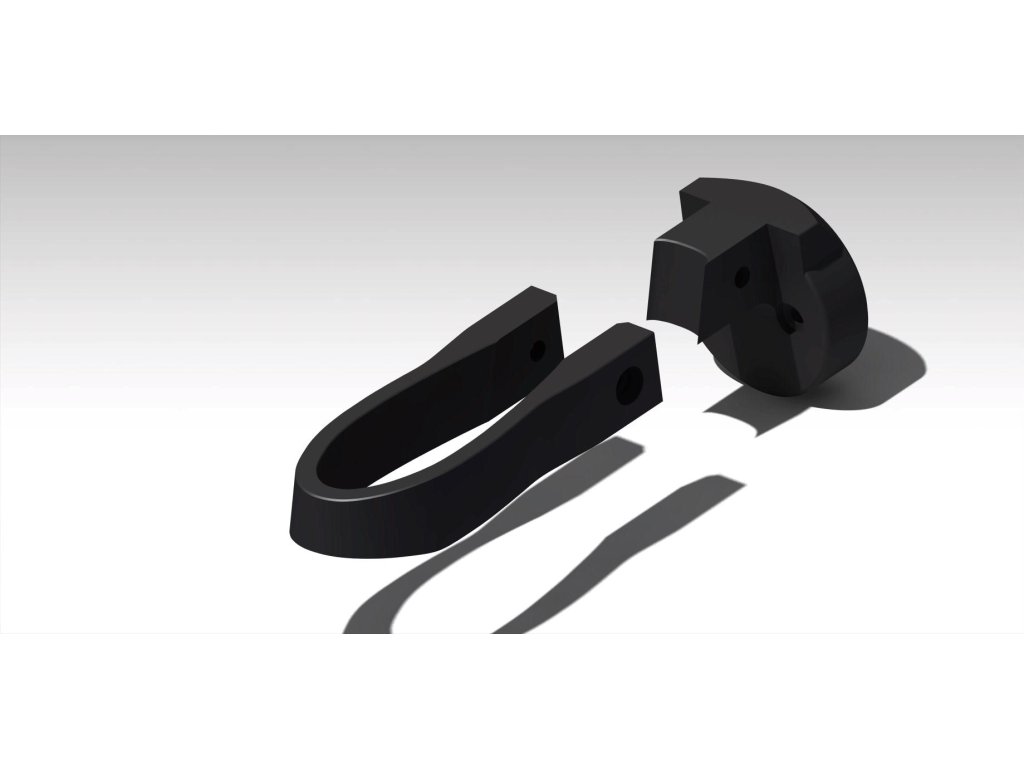 Varianta RCT 715: Držák je určen na radar s kamerou RCT 715. Tento držák není kompatibilní s radary bez kamery! Na tento držák se musí vždy nainstalovat pákový upínací mechanizmus z originálního gumičkového držáku dodávaného k radaru. Držák se montuje na vytaženou sedlovku z rámu, zespodu nasunutím.